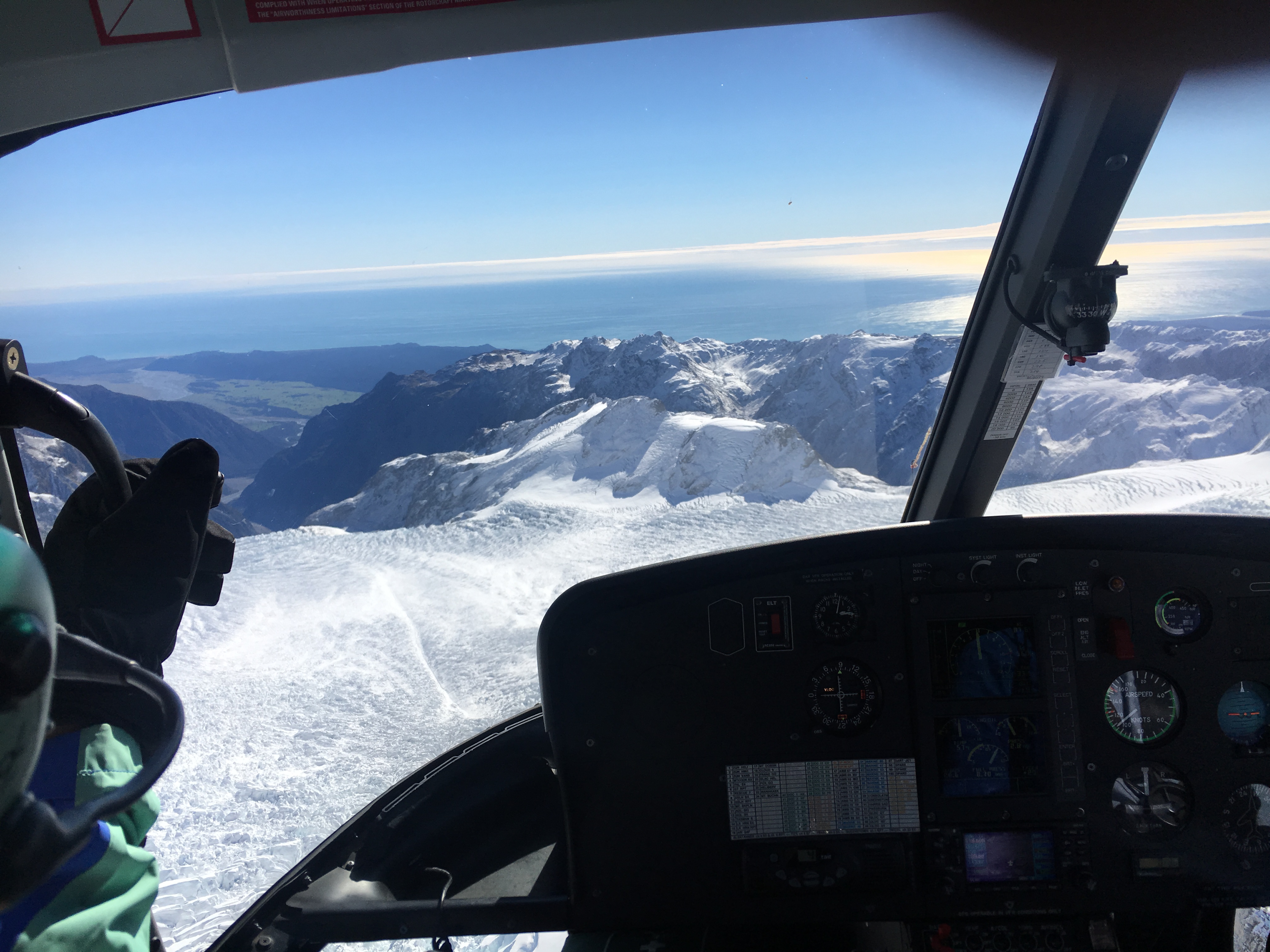 from Aoraki looking out over the Fox Glacier towards the Tasman Sea